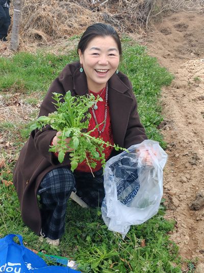 活动首站设在泾阳县吕氏家庭农场。春日的庄园生机盎然,大家沐浴着和煦暖阳,漫步田间地头,亲身体验挖野菜、采摘时令果蔬的乡野乐趣。荠荠菜、蒲公英、小葱、白蒿……大家一边辨认野菜品种,一边感受泥土的芬芳与春天的馈赠,在自然中彻底放松身心。