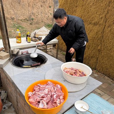 副会长符玉萍还别出心裁地在饺子皮上盖上“福”字,寓意福气满满,让这顿乡野午餐更添温情。庄园主人热情款待,特意宰杀大鹅,与排骨、基围虾、花蛤、红薯粉条、野菜一同炖成一锅香气四溢的铁锅炖,大家围坐在一起,品尝着地道的农家风味,分享劳动成果,欢声笑语不断,情谊在烟火气中持续升温。
