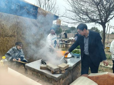 中午时分,一场别开生面的“柴火灶午餐”将活动推向高潮。大家分工协作,有的清洗采摘的野菜,有的动手烹饪自带食材,还有的将新鲜荠荠菜剁碎,与肉馅混合,包出形态各异的饺子。