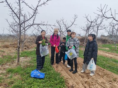 活动首站设在泾阳县吕氏家庭农场。春日的庄园生机盎然,大家沐浴着和煦暖阳,漫步田间地头,亲身体验挖野菜、采摘时令果蔬的乡野乐趣。荠荠菜、蒲公英、小葱、白蒿……大家一边辨认野菜品种,一边感受泥土的芬芳与春天的馈赠,在自然中彻底放松身心。