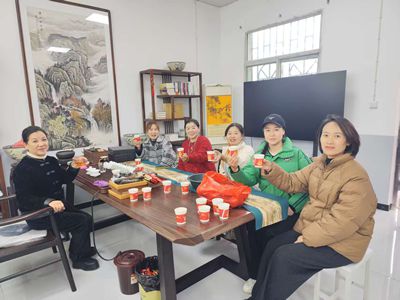 副会长符玉萍还别出心裁地在饺子皮上盖上“福”字,寓意福气满满,让这顿乡野午餐更添温情。庄园主人热情款待,特意宰杀大鹅,与排骨、基围虾、花蛤、红薯粉条、野菜一同炖成一锅香气四溢的铁锅炖,大家围坐在一起,品尝着地道的农家风味,分享劳动成果,欢声笑语不断,情谊在烟火气中持续升温。